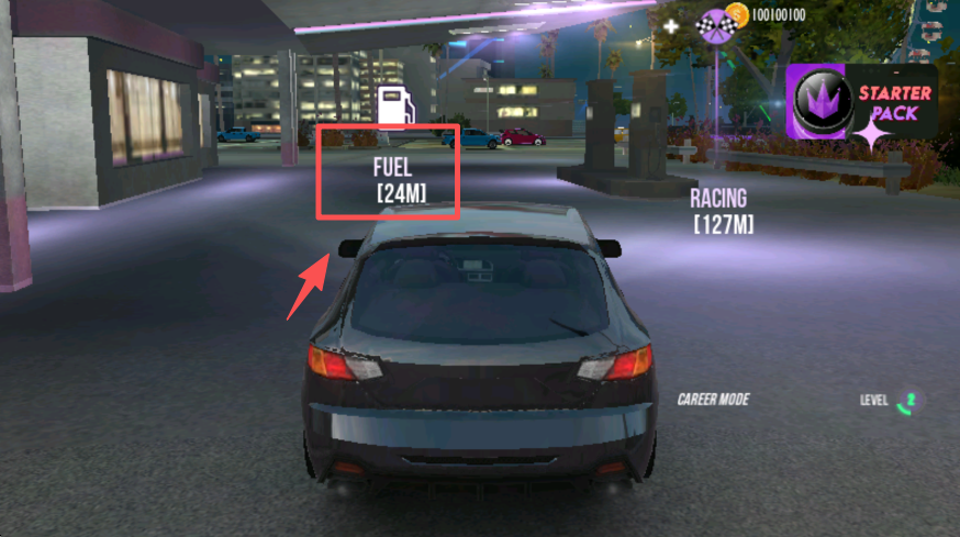 2、驾驶车辆前往加油站区域,补充燃油以维持行驶状态。