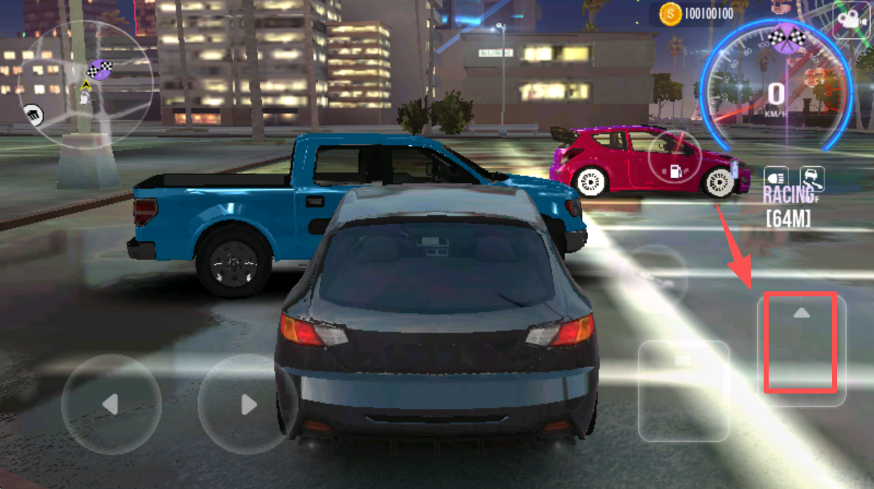 3、通过加速按钮提升车速,在城市道路中向比赛目标推进。
