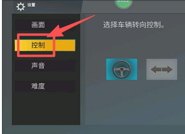 2、进入 “控制” 设置界面,选择合适的转向控制方式,适配自身操作习惯。