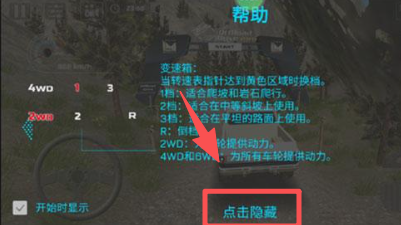 3、阅读帮助说明后点击 “点击隐藏”,关闭提示界面进入游戏的实际驾驶环节。