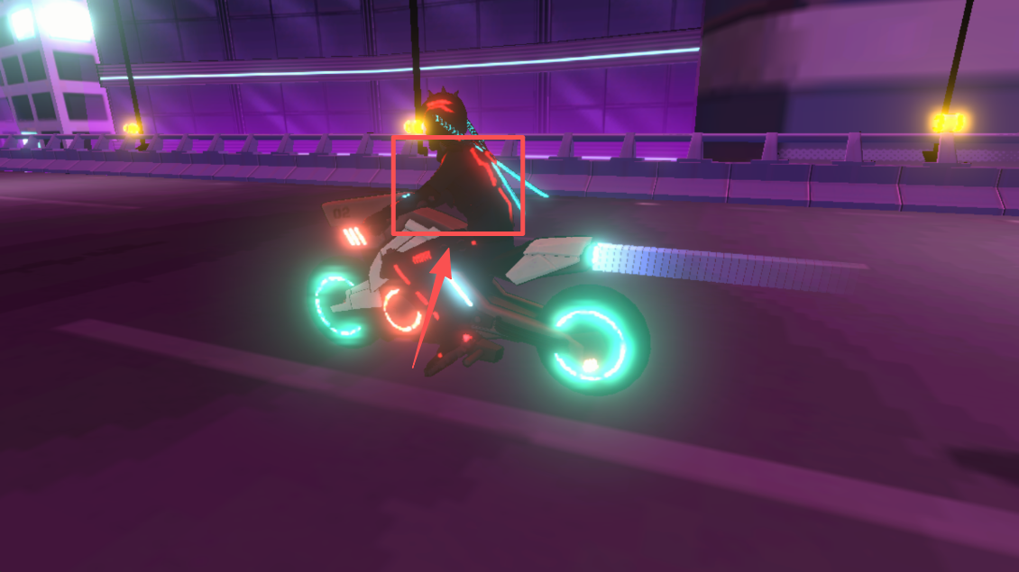 2、操控摩托骑手保持平衡,在赛博都市的赛道上开始行驶。