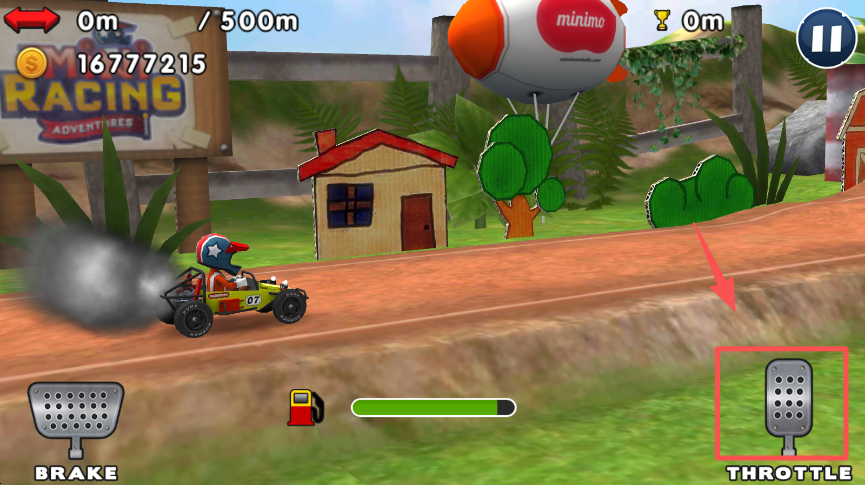 4、点击 “THROTTLE” 按钮加速,操控赛车在赛道上推进。