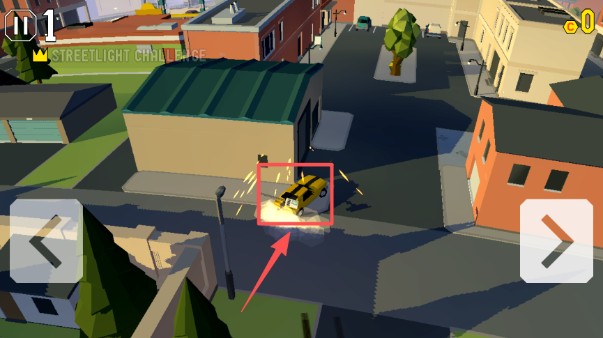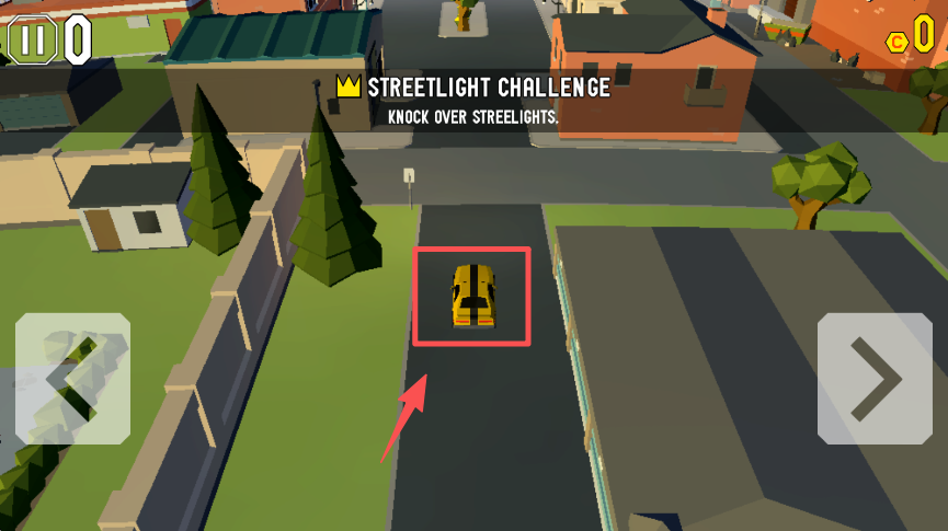 2、操控黄色赛车在街道行驶,准备完成撞倒路灯的任务。