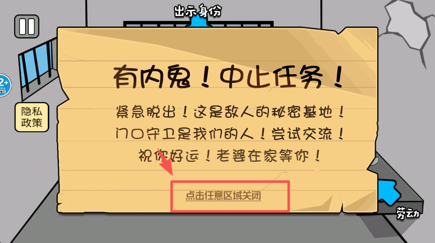 2、阅读任务提示后点击任意区域,关闭提示界面推进剧情。