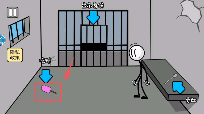 3、选择地面的冰棍道具,触发对应的逃脱剧情分支。
