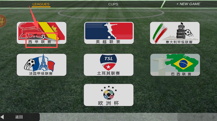 1、点击 “新建联赛” 按钮,进入赛事选择的界面。