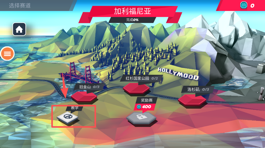 2、选择 “教学” 关卡,进入赛车选择的配置环节。