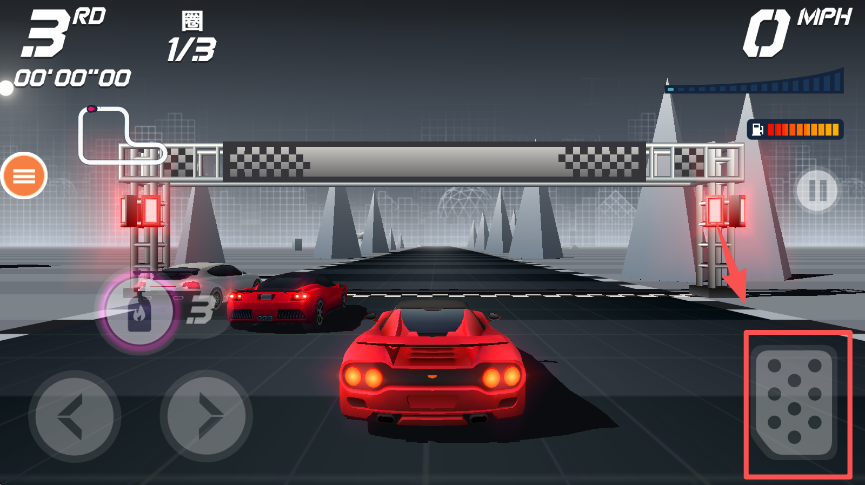 4、点击加速按钮启动赛车,在赛道中推进比赛进程。