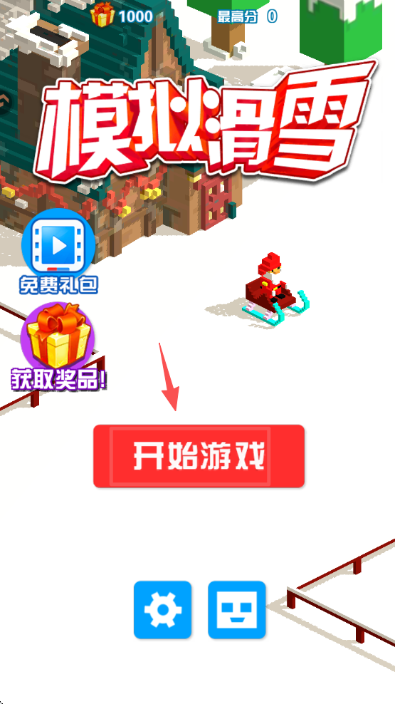 1、看到模拟滑雪的主界面,找到红色的 “开始游戏” 按钮,点击它即可进入游戏的操作环节。