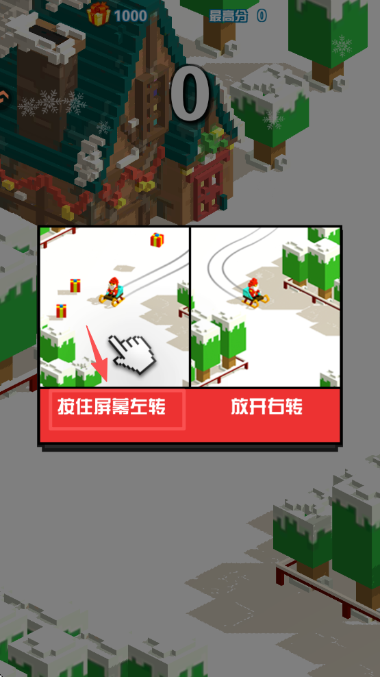 2、按住屏幕能让滑雪角色左转,松开屏幕则会右转,牢记这一操作方式。