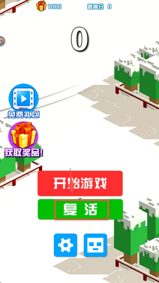 4、若滑行失误出现该界面,点击 “复活” 继续当前游戏进程。
