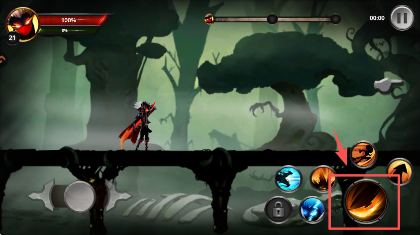 4、在教学界面,点击右侧对应的技能按钮,即可释放角色的格斗技能。