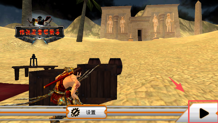 3、在游戏的启动过渡界面,点击红色框内的箭头按钮,进入游戏的实际游玩场景开始挑战。