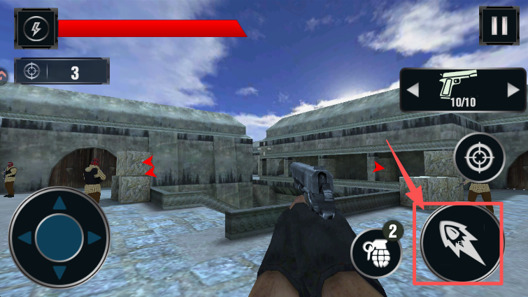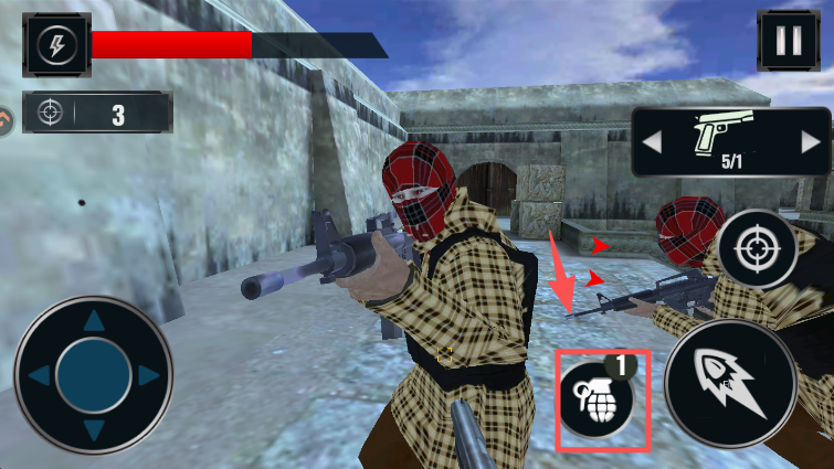 4、当遇到多个敌人时,点击界面上的手雷按钮,投掷手雷可对范围内敌人造成群体伤害。