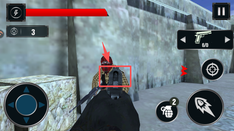 3、瞄准敌人后进行射击,击中敌人会减少弹药数量,同时对敌人造成伤害以推进关卡进度。