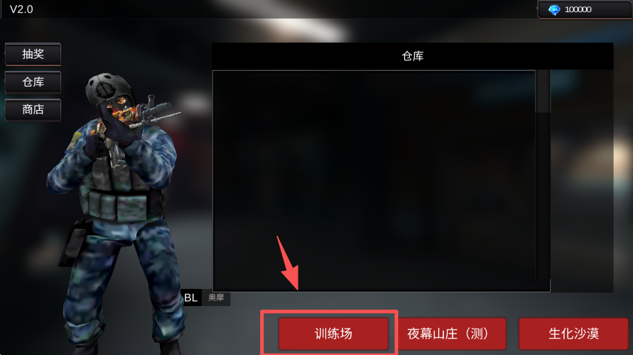 1、在游戏的仓库界面,找到下方的 “训练场” 按钮并点击,进入专门的射击练习场景准备进行操作。