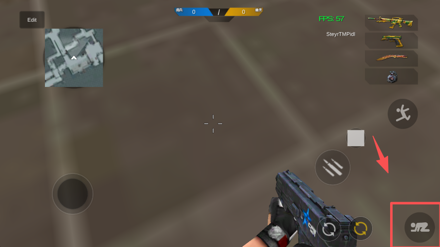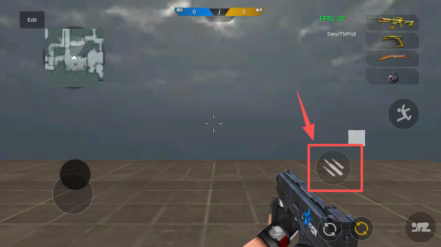 4、在训练场操作过程里,点击界面右下角的对应功能按钮,完成武器换弹等辅助操作完善练习。