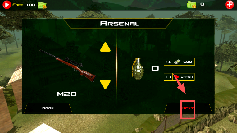 3、在武器选择界面,确认当前的武器配置,点击右下角 “NEXT” 按钮,进入对应的游戏关卡。