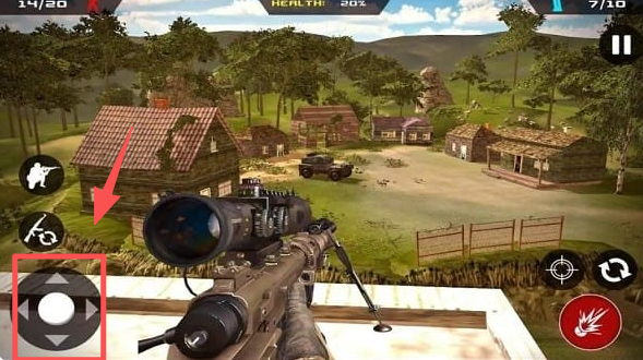 4、进入游戏关卡后,借助界面左下角的操控杆,操控它来调整射击视角,推进游戏任务。