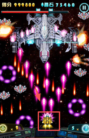 2、战斗时,操控红框战机躲炮弹并攻击敌机。