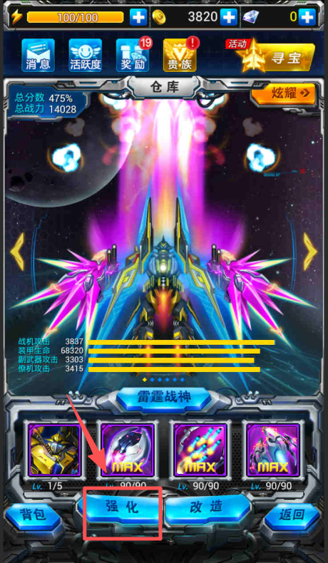 3、仓库选装备,点击 “强化” 提升其等级战力。