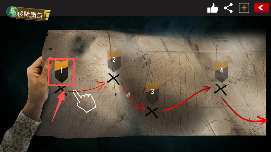 3、选择地图中 “1” 号标识,确定初始任务的执行路径。