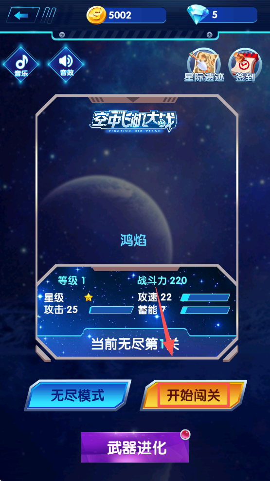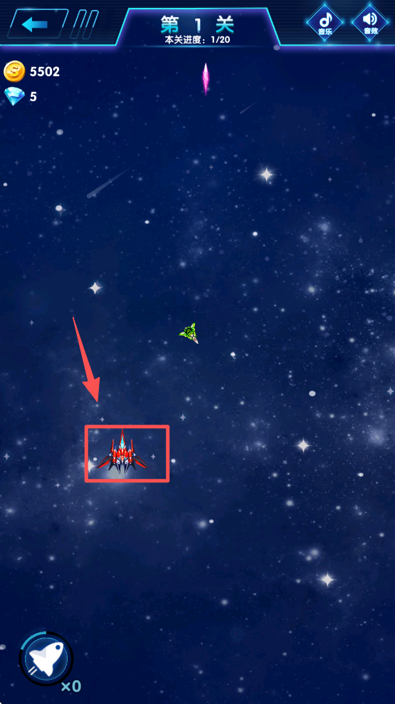 4、操控红框内的战机,在关卡中躲避敌机并发起攻击推进进度。