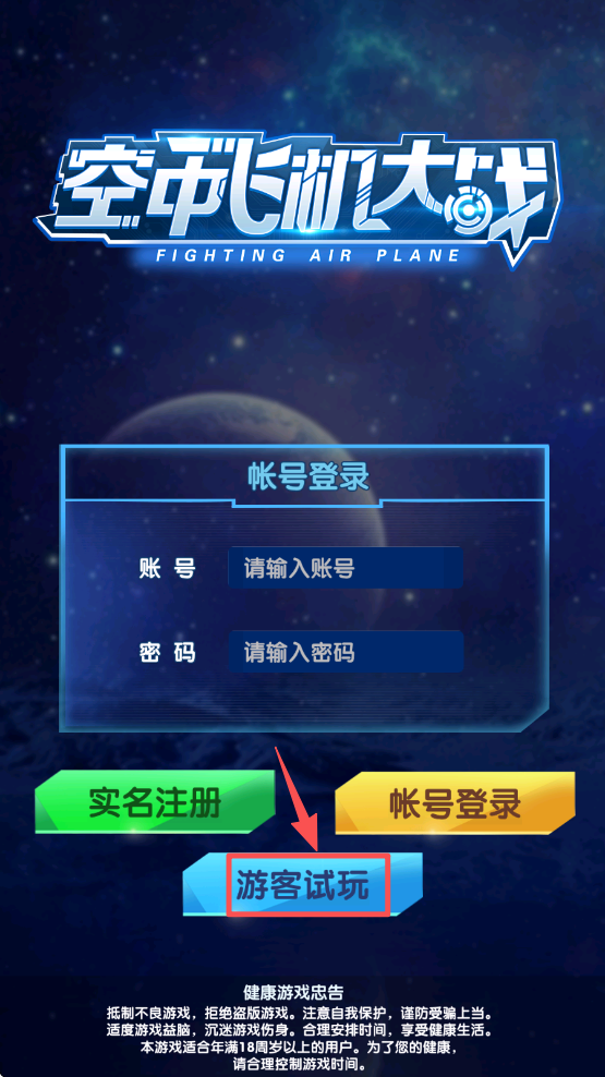 1、点击 “游客试玩” 按钮,无需登录直接进入游戏主界面。
