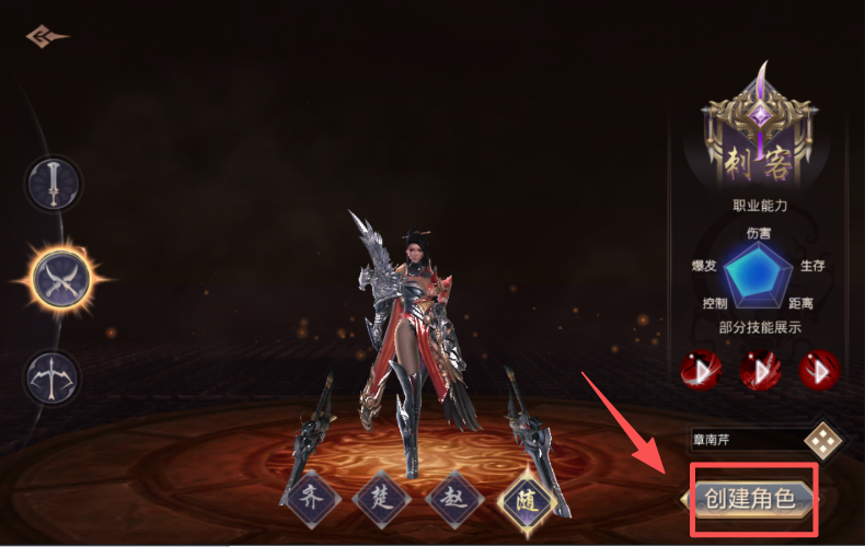 1、选好职业与阵营后,点击 “创建角色” 按钮,生成游戏角色。