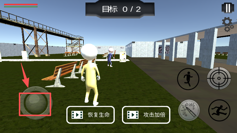 4、游戏中拖动左侧遥感,控制橡皮人在场景中移动。