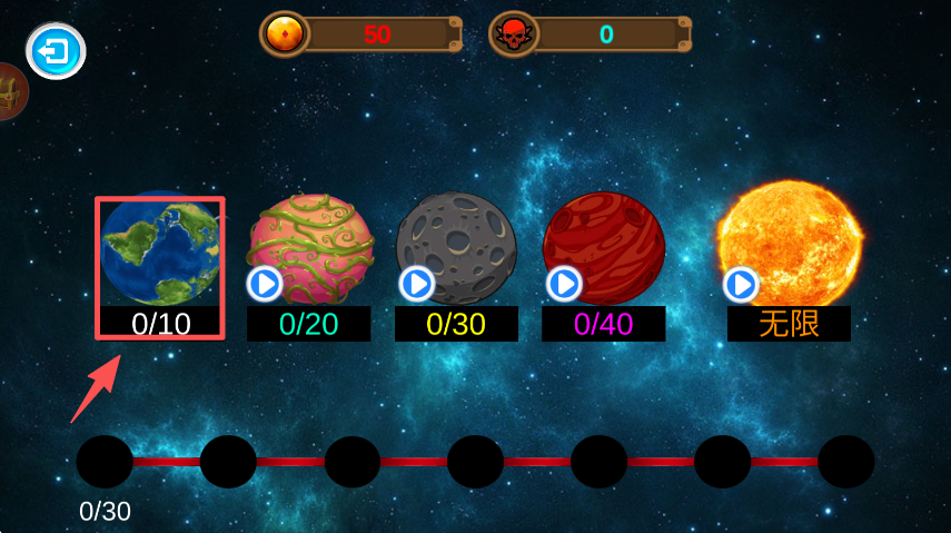 2、在模式选择页,点击带 “新” 标识的对战模式,进入星球关卡选择界面。