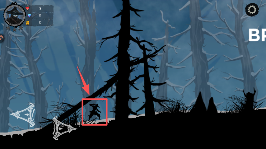 1、进入关卡后,找到左下角带箭头的操作按钮,点击它控制忍者角色开始移动。