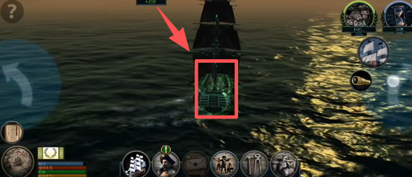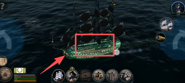 1、进入游戏后,先确认界面中被标注的海盗船,熟悉当前船只的初始状态。