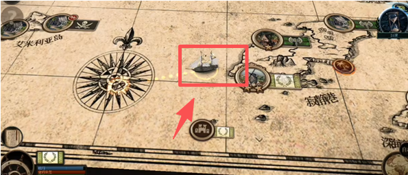 2、在地图界面找到船只标识,通过操作控制船只向目标区域航行。