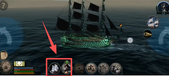 3、回到航行界面,点击底部的船只图标,调整船只的航行状态或方向。