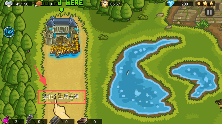 3、在战斗界面根据提示,派 10 个士兵前往指定区域,完成该位置的占领操作。