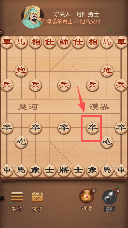 2、进入象棋对局后,按照规则操作棋子,如红框标注的卒,推进对局进程。