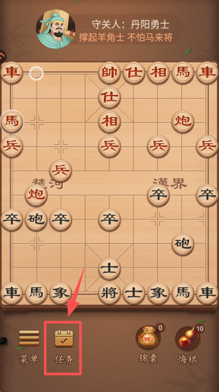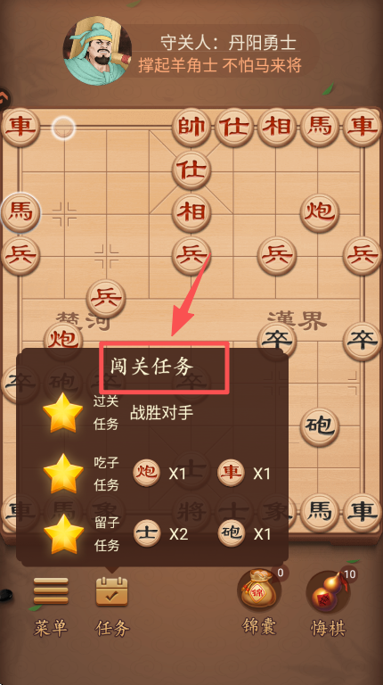 3、在对局界面点击底部的 “任务” 按钮,查看当前闯关对应的任务要求。