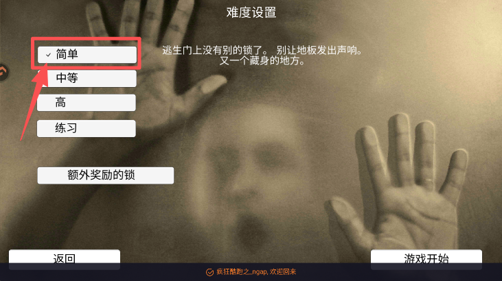 3、在难度设置界面,选择 “简单” 难度,完成游戏难度的配置。