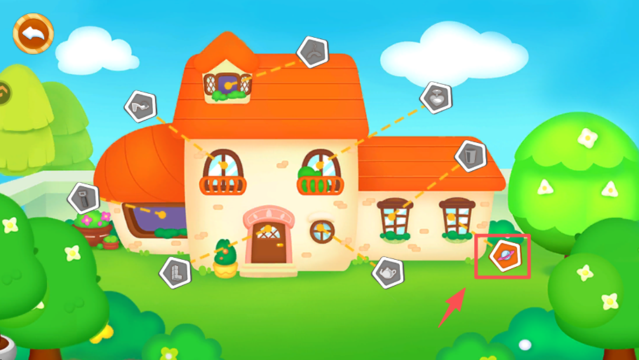 2、点击房屋旁的道具图标,进入房间清洁场景。
