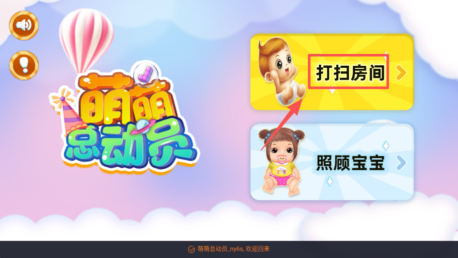 1、点击界面中 “打扫房间” 按钮,进入对应玩法。