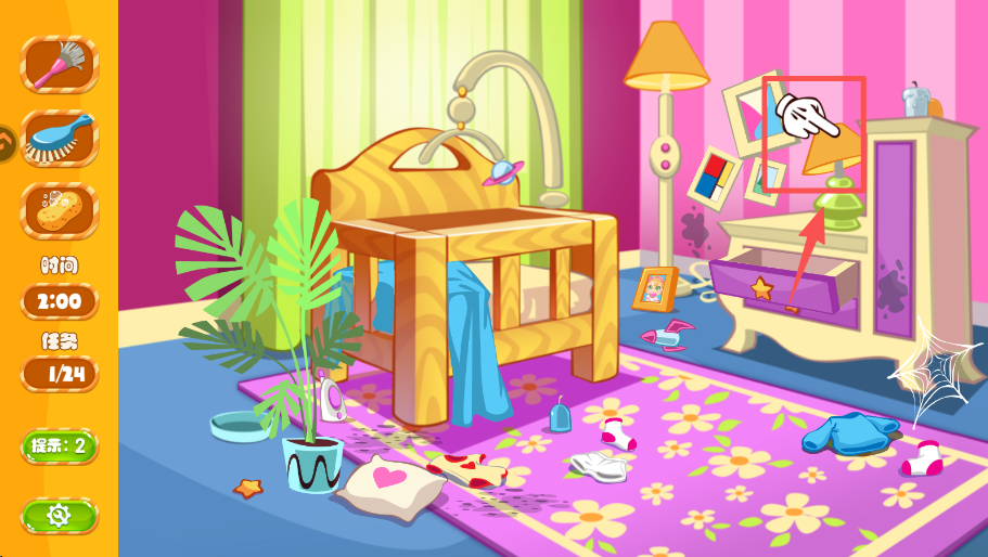 3、点击床旁的蛛网区域,完成该位置的清洁任务。