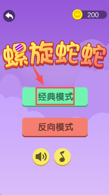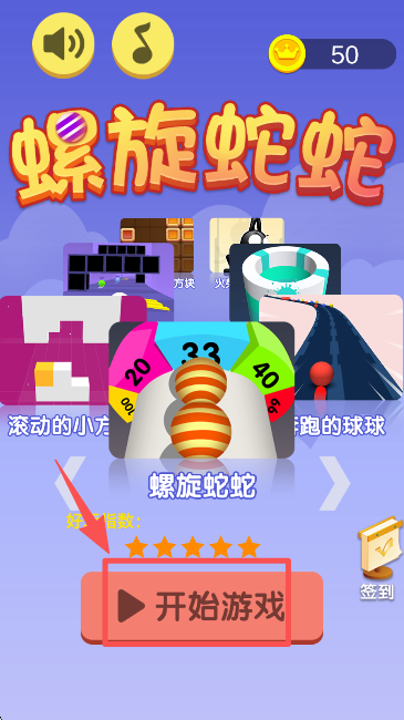 2、在游戏主界面,点击 “开始游戏” 按钮,进入螺旋蛇蛇的游戏模式选择页面。