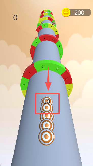 1、玩家操控一条灵动的蛇,沿着高塔螺旋上升的路径不断前进,道路被划分为不同颜色的区块,需要精准判断和操作。