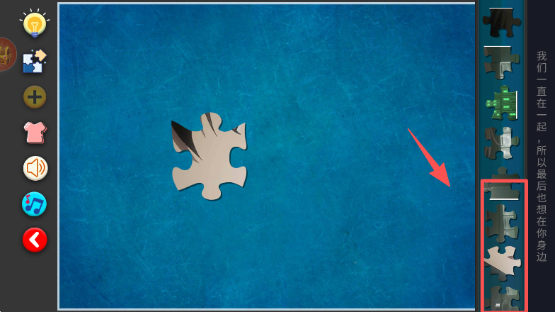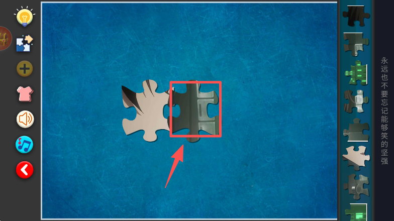 3、进入拼图关卡后,点击右侧拼图栏里的碎片,将其选中准备放到对应位置。