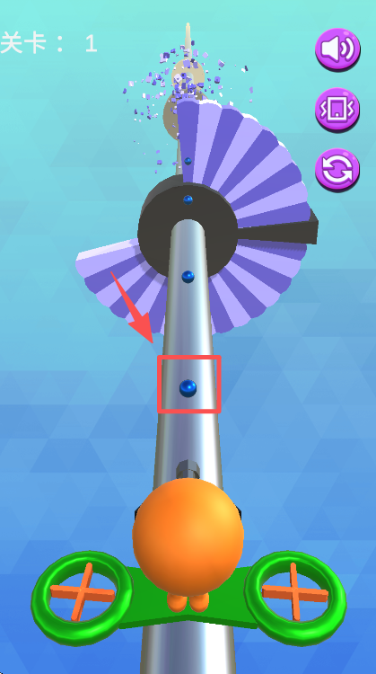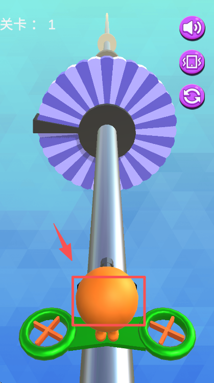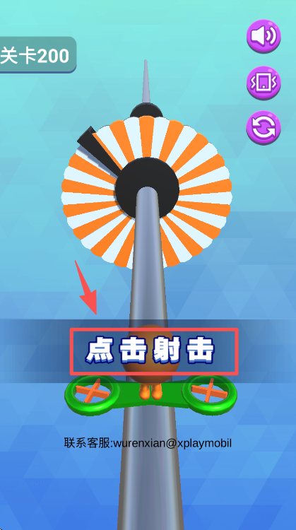 2、点击射击后,角色会向上发射攻击,对准上方的扇叶类目标持续进行射击操作。