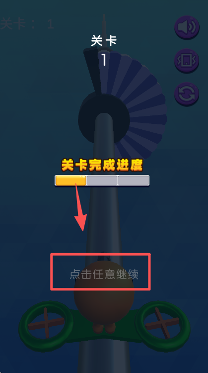 4、关卡进度条填满后,界面会显示 “点击任意继续”,点击屏幕即可进入下一个环节。