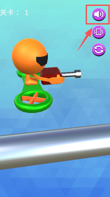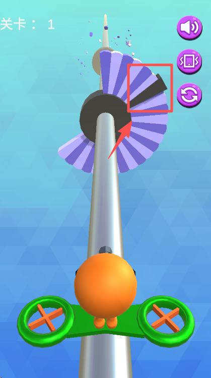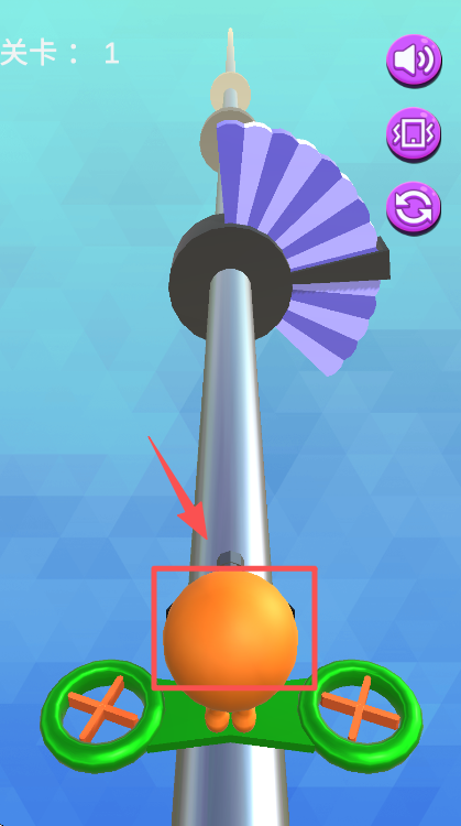 1、进入关卡 1 后,操控橙色角色对准上方的扇叶目标,准备进行射击操作推进关卡。