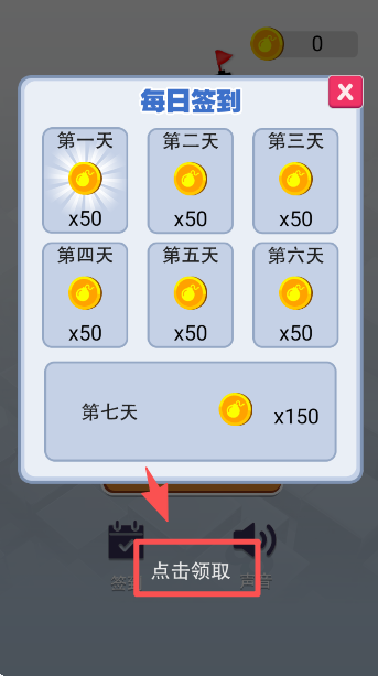 1、在每日签到界面,找到下方的 “点击领取” 按钮并点击,即可获取当天对应的签到金币奖励。