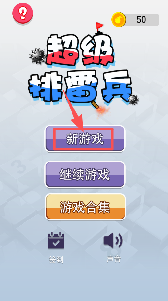 2、领取完签到奖励后回到主界面,点击 “新游戏” 按钮,就能进入超级排雷兵的游戏界面。